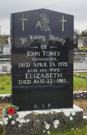 John Joseph Towey was the son of John Towey (a Farmer) and Bridget Towey. Married Elizabeth Grimes on 14 September 1949 in St. Adam and Eve (Audeon's Church), Merchants Quay, Dublin. Upon retirement in 1956 resided in Ballaghaderreen. Died on 28th April 1979. He is buried in Kilcolman New Cemetery, County Roscommon. |