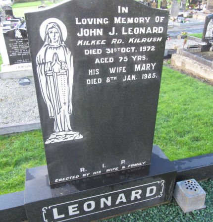 Son of Jeremiah Leonard (a Shoemaker) and Kate Cotton. During the War of Independence served as an IRA Captain under Commandant Tom Barry and during the Irish Civil War as Lieutenant in the Engineer Corps of the Irish National Army from 1922 until 1924. Married Mary Carr on 1st October 1930 in Nenagh, County Tipperary. Retired on 11th July 1958. Resided in Kilrush, County Clare. Died on 31st October 1972. He is buried in New Shanakyle Cemetery, Kilrush. |